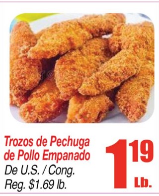 Trozos de pechuga de pollo empanado de u.s. / cong.