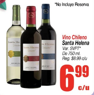 Vino Chileno Santa Helena Var. SVPT De 750 ml.