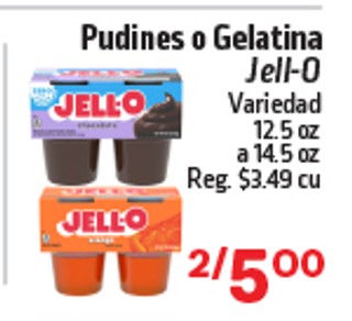 Puddines o gelatina jell-o variedad 12.5 oz a 14.5 oz.