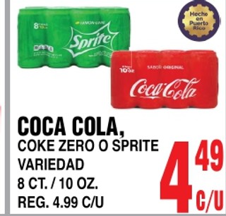 COCA COLA, COKE ZERO O SPRITE VARIEDAD 8 CT./10 OZ.