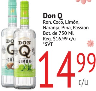 Don Q Ron. Coco, Limón, Naranja, Piña, Passion Bot. de 750 ML