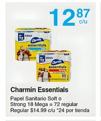 hega charmi essentials soft charmin strong papel sanitario regular $c/u *por tienda