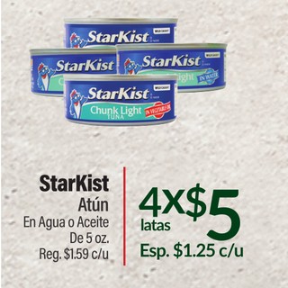 Starkist Atún En Agua o Aceite De 5 oz.