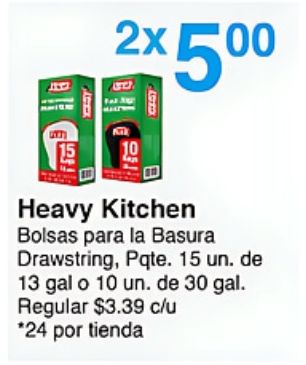 xheavy kitchen bolsas basura drawstring pqte regular $c/u *por tienda