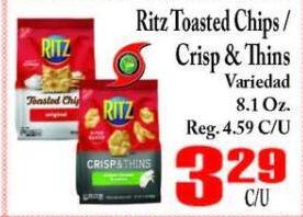 ritz toasted chip chips/ crispathins crisp thins variedad reg.