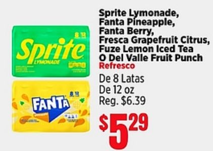 sprite lymonade fanta pineapple, berry, fresca grapefruit citrus, fuze lemon iced valle fruit punch refresco latas