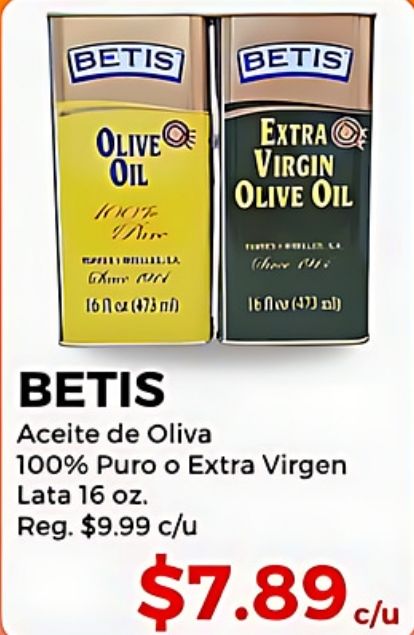 betis extra virgin olive gxme aceite oliva puro virgen lata reg. $c/u