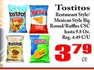 tostitos ruffles cheddar restaurant style/ mexican style round/ruffles reg.