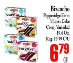 coconut chocolate vanill velvet bizcocho pepperidge farm layer cake cong variedad reg.