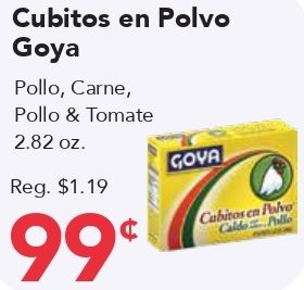 cubitos polvo goya pollo carne, tomate gova reg. cabitos caldo pullo