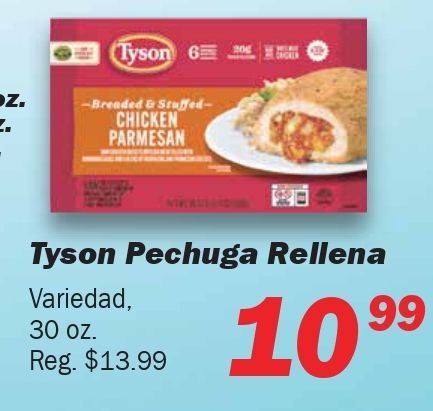 tyson -breaded stuffed- chicken parmesan pechuga rellena variedad reg.
