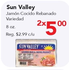 valley jamón cocido rebanado variedad reg. $c/u xsun