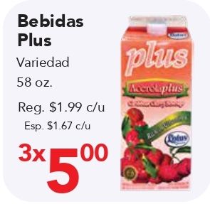 bebidas plus variedad reg. $c/u esp. xplus acerolaplus