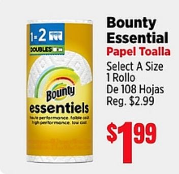 doubles bounty essentiels hate performance faible high performance, essential papel toalla select size rollo hojas