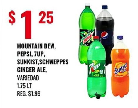 $ountain pepsi, sunkist,schweppes ginger ale, variedad $sunkist