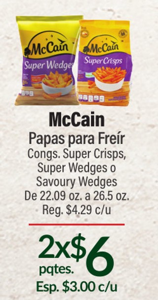 McCain Papas para FreÃr Congs. Super Crisps, Super Wedges o Savoury Wedges De 22.09 oz. a 26.5 oz.