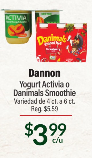Dannon yogurt activia o danimals smoothie variedad de 4 ct. a 6 ct.