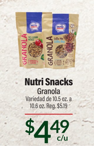 Nutri snacks granola variedad de 10.5 oz. a 10.6 oz.