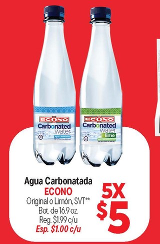 Agua Carbonatada ECONO Original o Limon, Bot. de 16.9 oz.