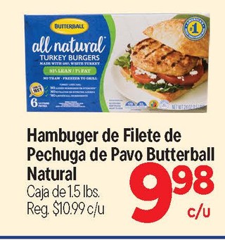 Hamburger de filete de pechuga de pavo butterball natural caja de 1.5 lbs.