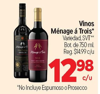 Vinos Ménage á Trois* Variedad, SVT** Bot. de 750 ml.