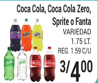 Coca Cola, Coca Cola Zero, Sprite o Fanta VARIEDAD 1.75 LT.