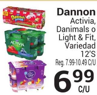 Dannon Activia, Danimals o Light & Fit, Variedad 12'S Reg. 7.99-10.49 C/U