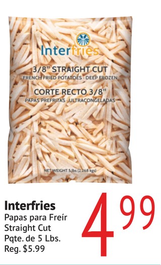 Interfries Papas para FreÃr Straight cut pqte. de 5 lbs.