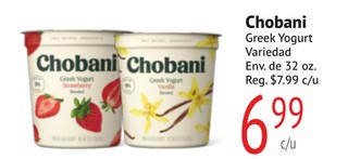 Chobani Greek Yogurt Variedad Env. de 32 oz.