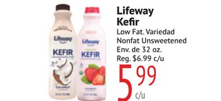 Lifeway Kefir Low Fat. Variedad Nonfat Unsweetened Env. de 32 oz.