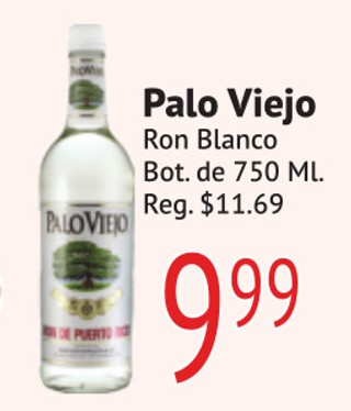 Palo Viejo Ron Blanco Bot. de 750 Ml.