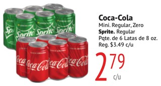 Coca-Cola Mini. Regular, Zero Sprite. Regular Pqte. de 6 Latas de 8 oz.