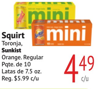 Squirt Toronja, Sunkist Orange, Regular Pqte. de 10 Latas de 7.5 oz.