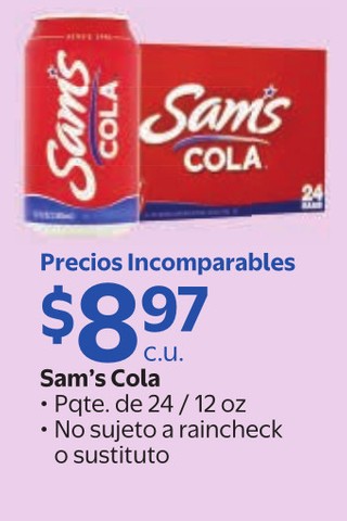 Sam's Cola Pqte. de 24/12 oz No sujeto a raincheck o sustituto.