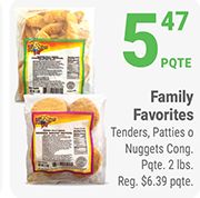 pqte family favorites tenders patties nuggets cong pqte. reg. $pqte.