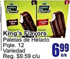 kings king's flavors flavo crunch paletas helado pqte variedad reg. $c/u