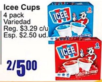 icee cups pack variedad $c/u esp. $ud. /wild cherry