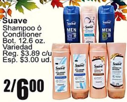 suave shampoo conditioner variedad reg. $c/u esp. $ud. /suve sume same stane sune