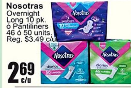 overnight long pantiliners units. reg. $c/u diorios diarios