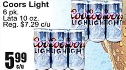 coors light lata reg. $c/u lighlightight coocoolood lighlighight