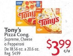 tony tony's pizza cong supreme cheese pepperoni reg. $tony's