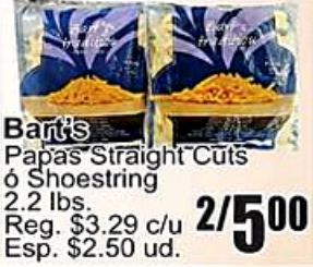 bart's papas straight cuts shoestring reg. $c/u esp. $ud.
