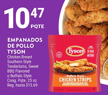 %pote empanados pollo tyson chicken breast southern style tenderloins sweet flavored buffalo cong pqte. reg. $tyson -buffalo style- strips