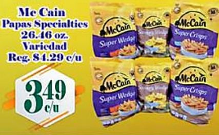 cain papas specialties variedad reg. $c/u ccain super wedge mccain crisps