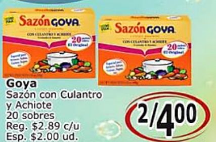 sazón goya gova culantro achiote sobres $c/u esp. $ud.