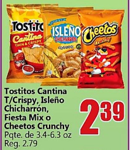 tost cantina isleno cheetos thin crispy whicharse avenue tostitos t/crispy isleño chicharrón, fiesta crunchy pqte reg.