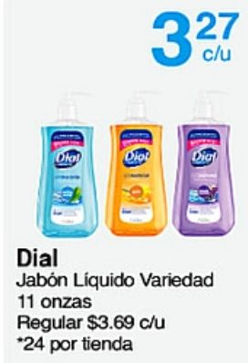 dial jabón líquido variedad onzas regular $c/u *por tienda