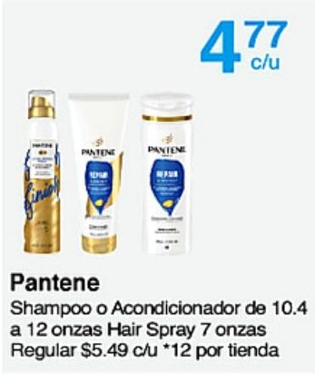 panten pantene shampoo acondicionador onzas hair spray regular $c/u *por tienda