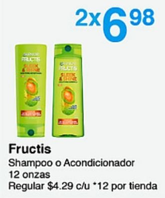 fructe fructs sleek xfructis shampoo acondicionador onzas regular $c/u *por tienda
