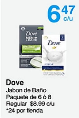 dove +care jabon baƱo paquete regular $c/u *por tienda